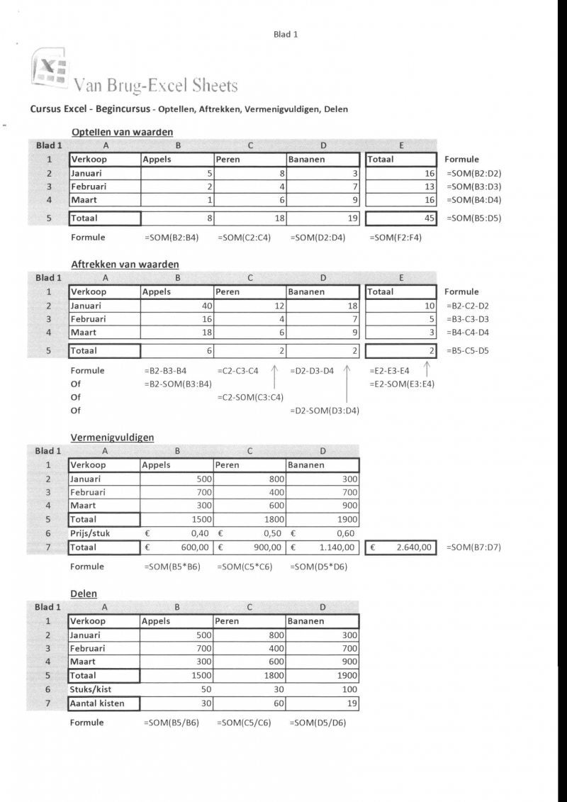 Voorbeeld Excel cursus begin